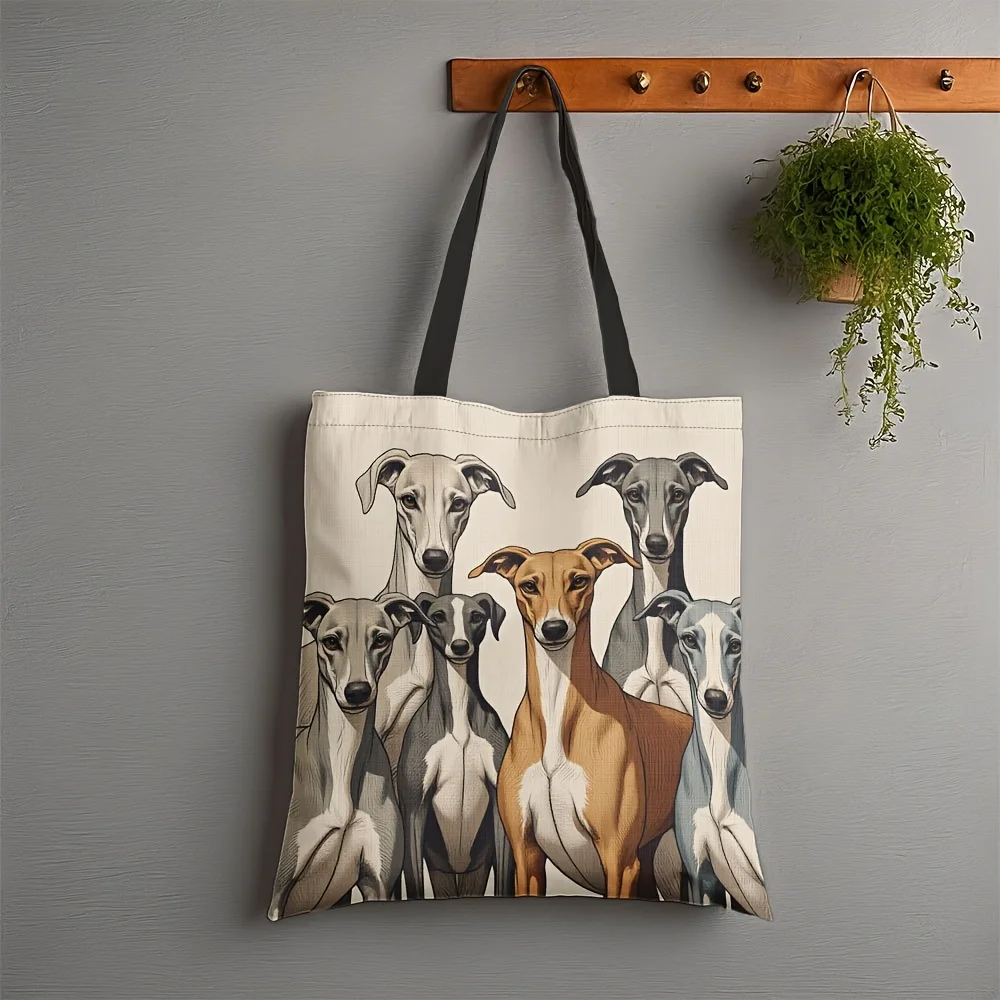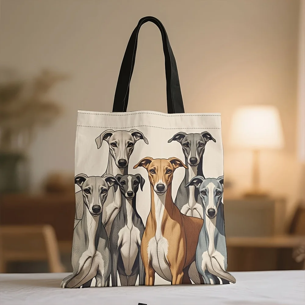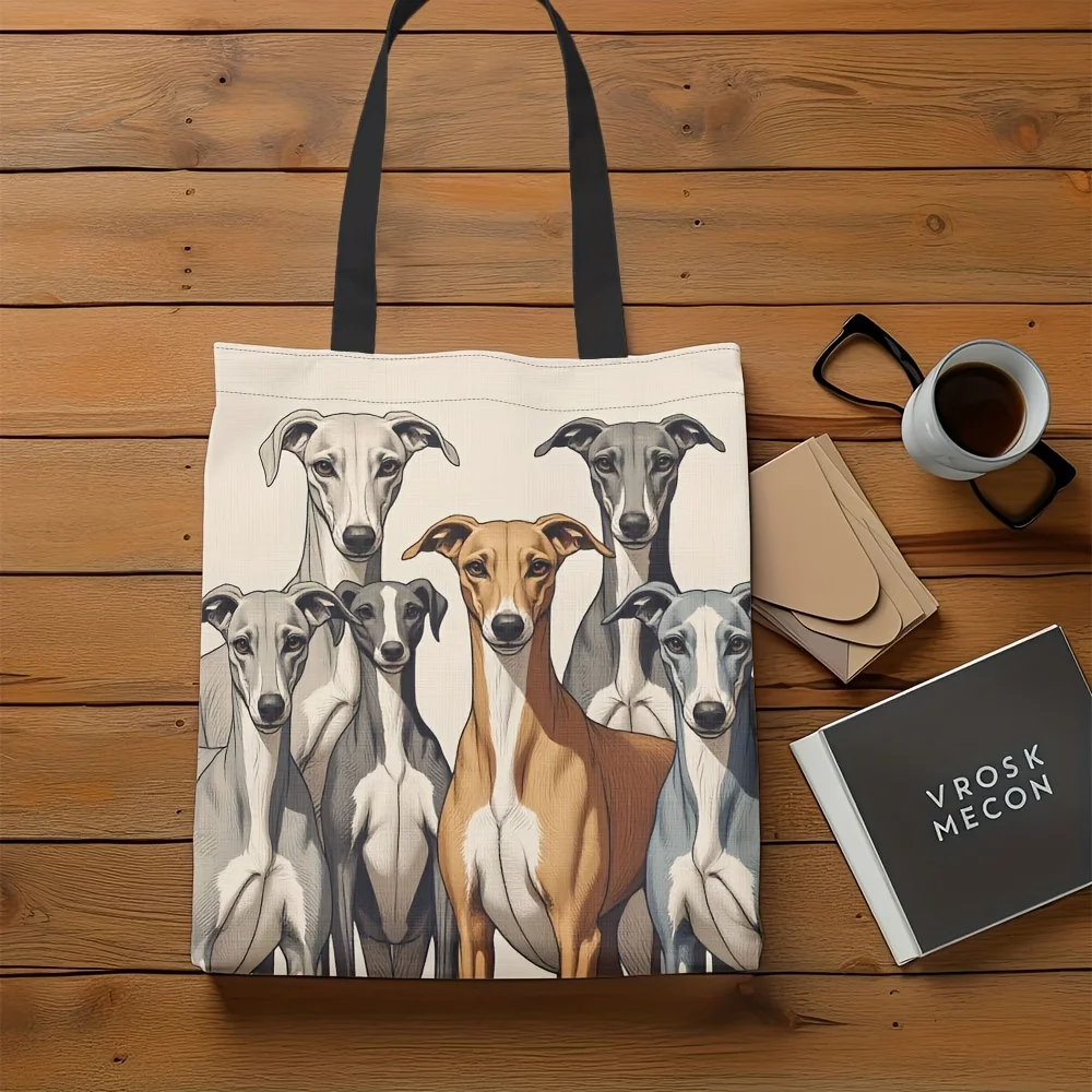 1pc Durable Women'S Tote with Greyhound & Whippet Dog Print - Spacious, Reusable Grocery Bag for Shopping, Work