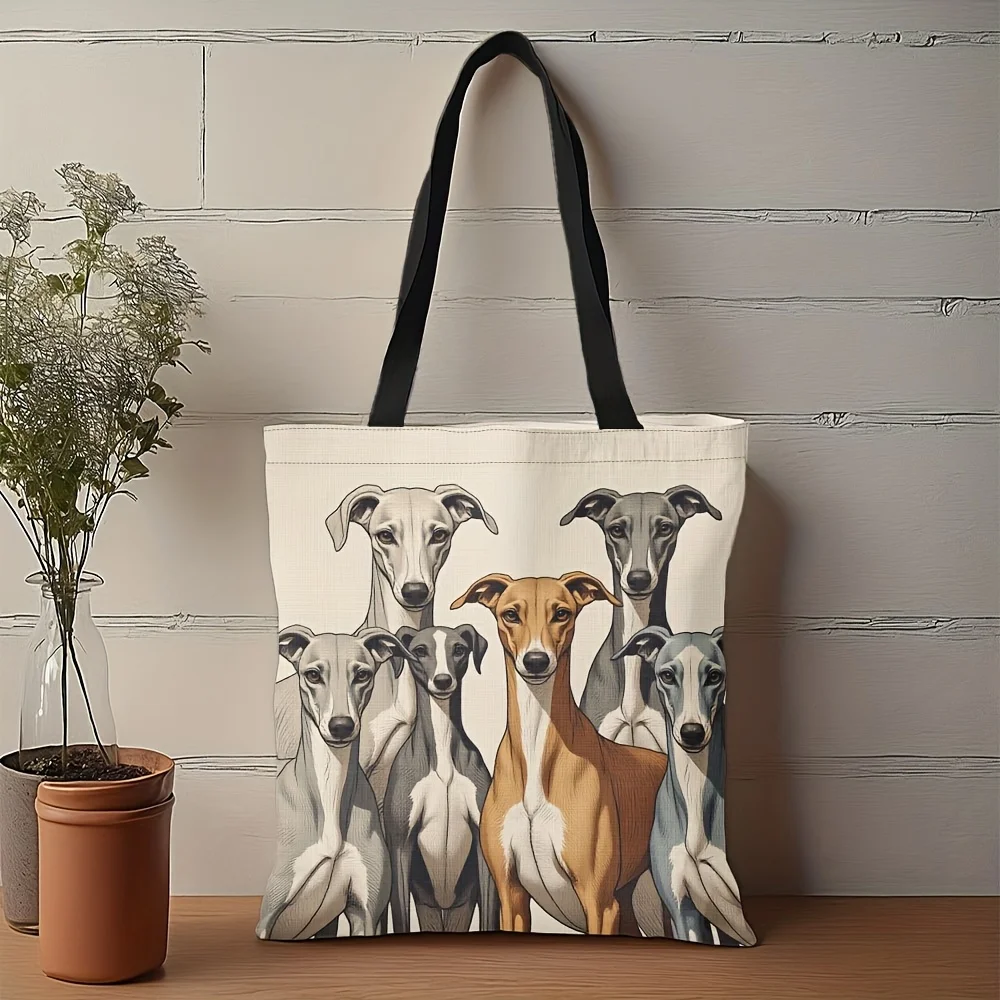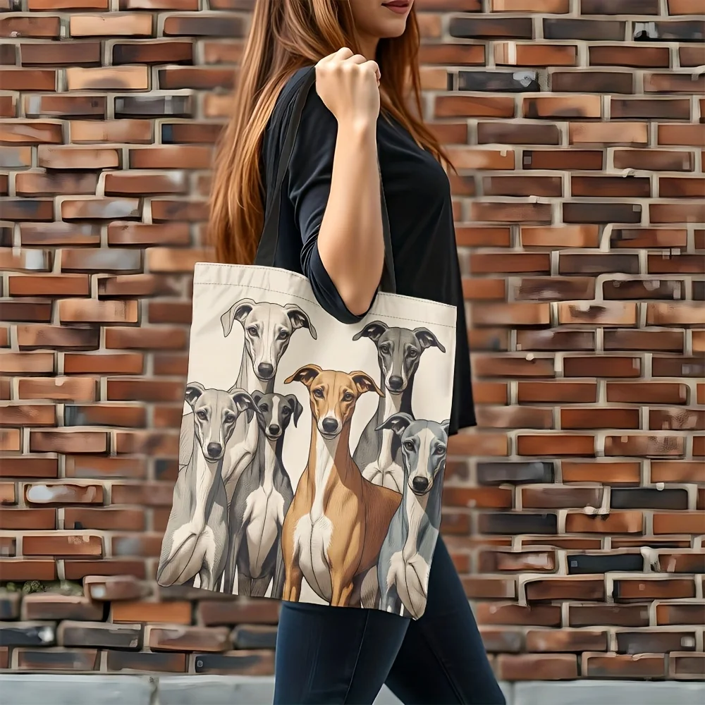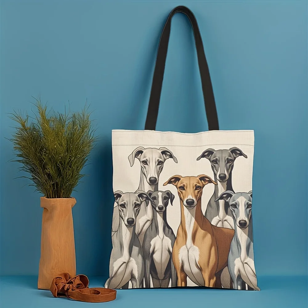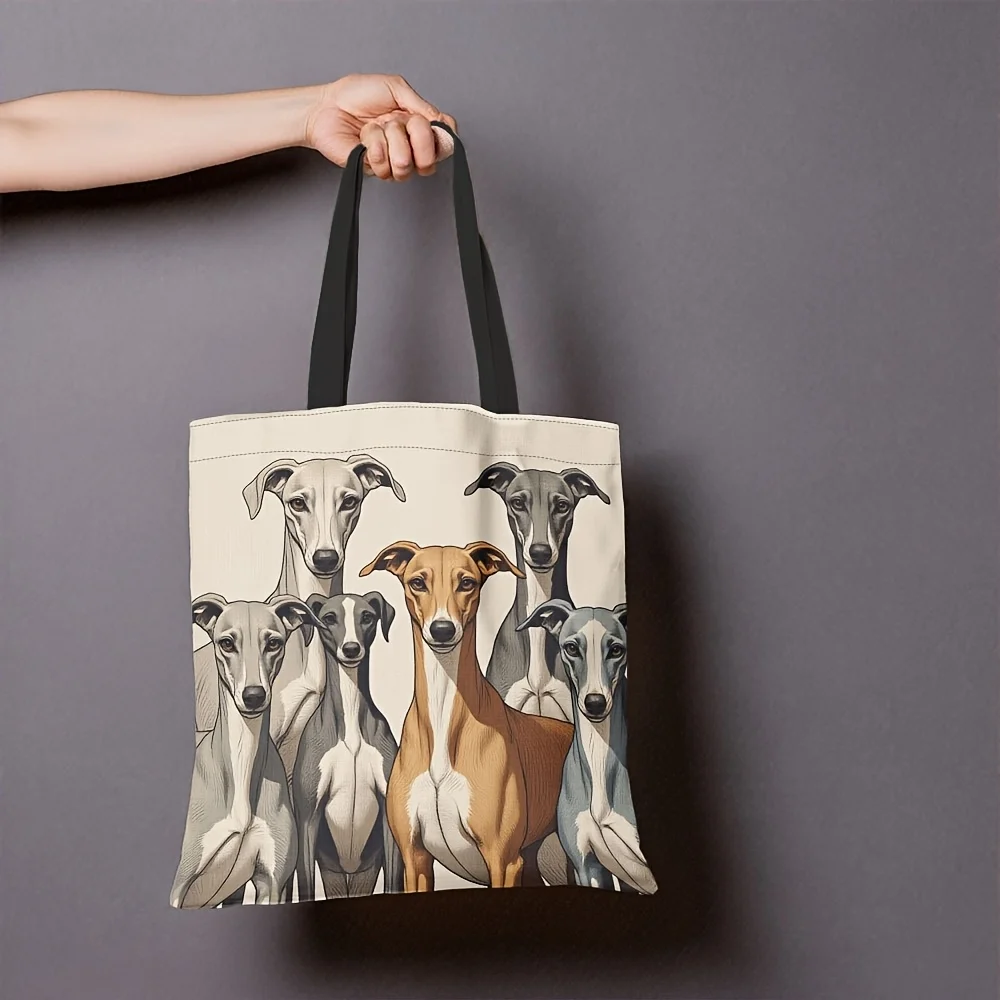1pc Durable Women'S Tote with Greyhound & Whippet Dog Print - Spacious, Reusable Grocery Bag for Shopping, Work