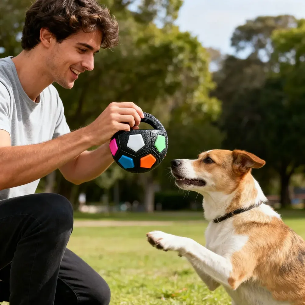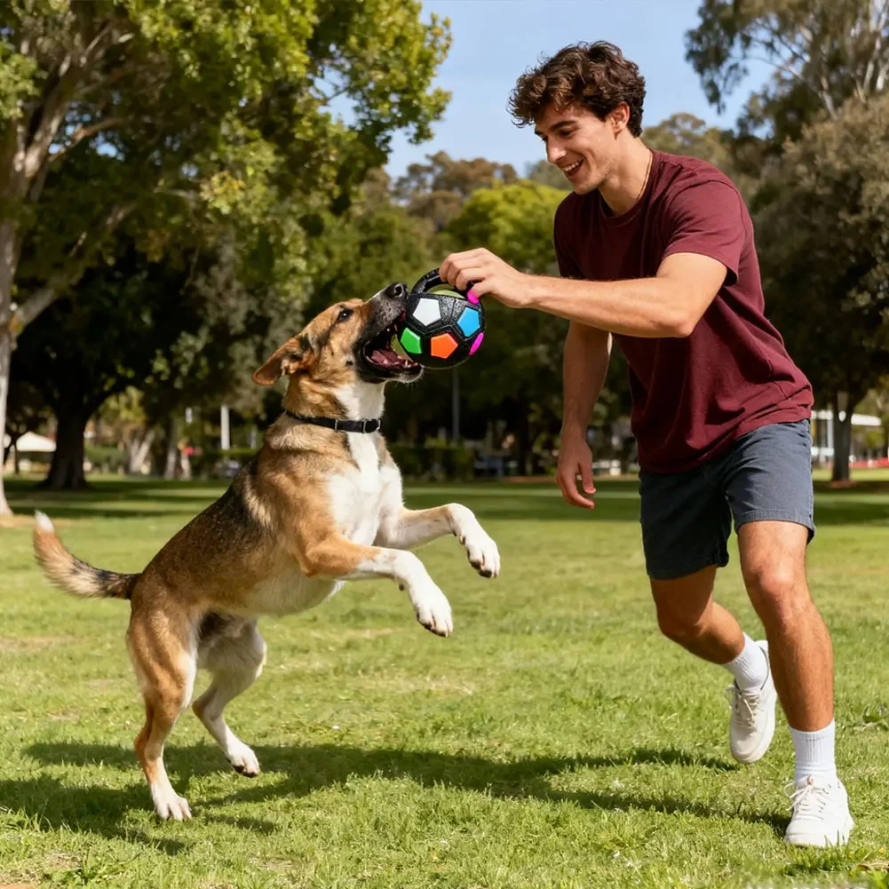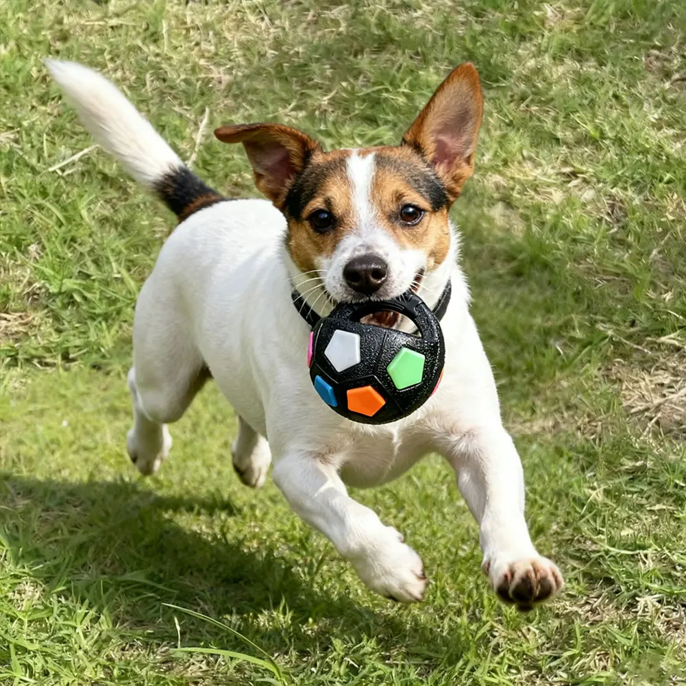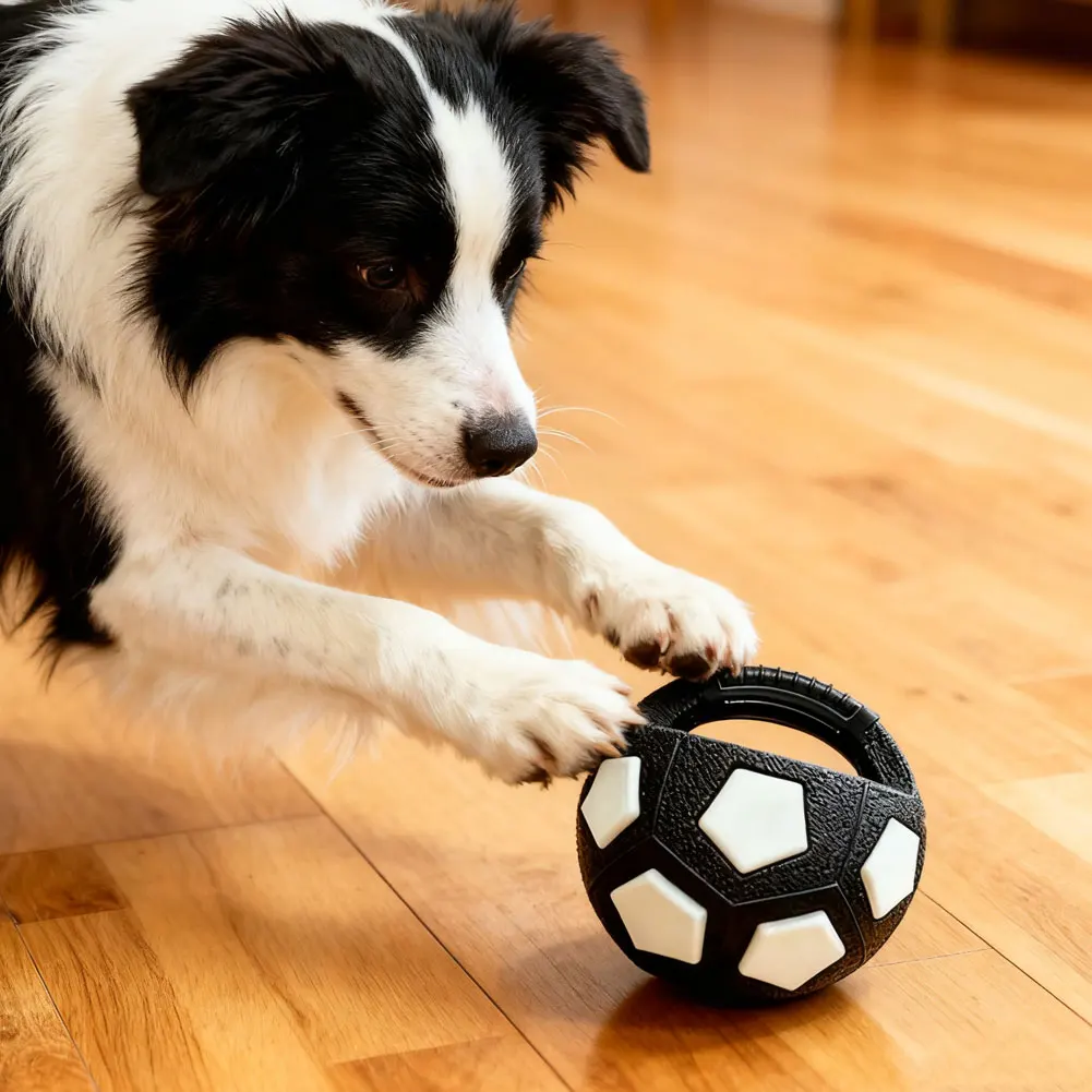 Fun Squeaky Pet Soccer Ball Dog Football with Handle Durable TPR Interactive Play Train Teeth Grinding Toy